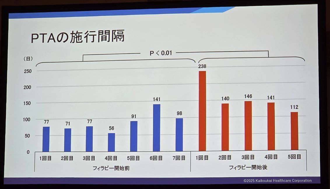 また、会場ではフィラピーによるPTA施行間隔の延長に関する臨床研究も発表され、多くの医療従事者の間で活発な意見交換と議論が行われました。